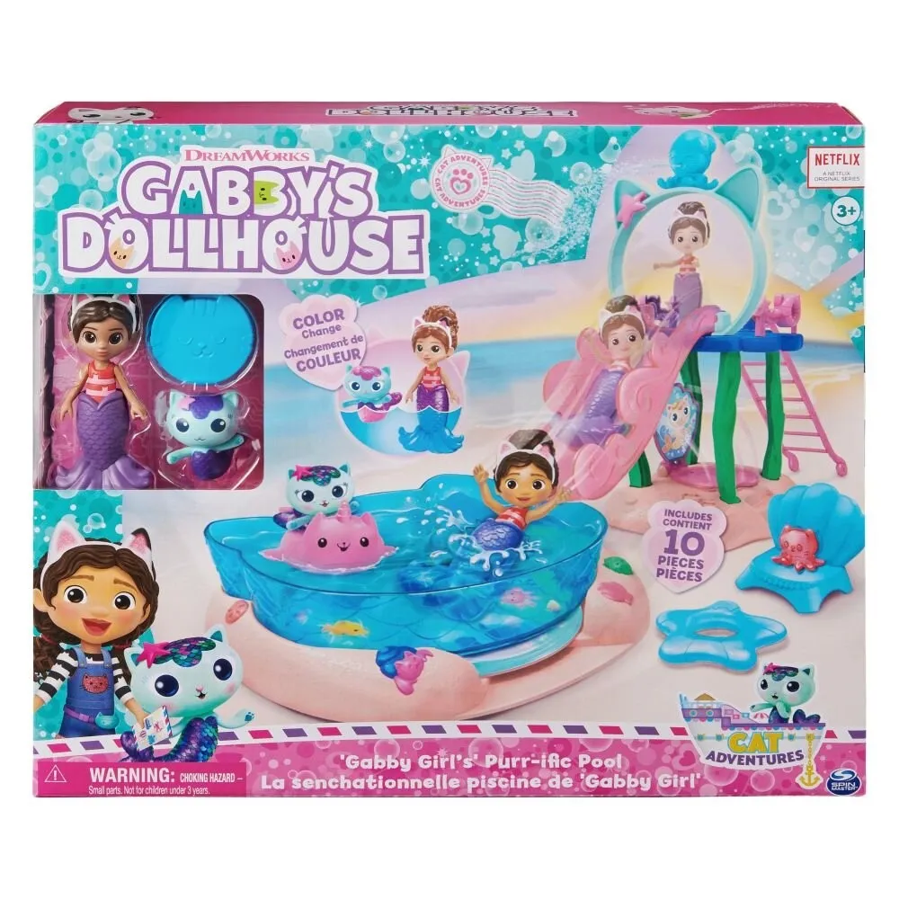 Okupljamo sve Gabby’s Dollhouse figurice i krećemo u timsku potragu za blagom ispod školjke, zajedno smišljamo lude priče u našem bazenskom svijetu.