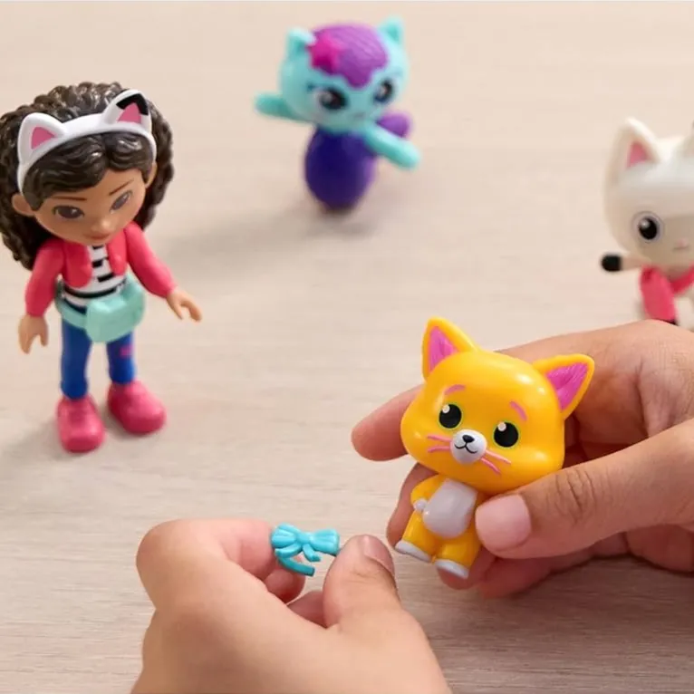 Uđite u svijet filma: Gabby’s Dollhouse s paketom Mačkasti tim. Ovaj uzbudljivi set sadrži 11 filmskih figurica – Gabby, Pandy Paws, Cakey Cat, MerCat, Kitty Fairy, Baby Box i Chumsley – i sve izgledaju točno kao u filmu Gabby’s Dollhouse. Gabby je visoka 9 cm, ima pokretnu glavu i udove, tako da djeca mogu stvarati vlastite priče. Pandy Paws ima torbicu, Cakey Cat ima kuharsku kapu, a Chumsley nosi leptir mašnu. Otvorite paket iz Gabbyine kuće i otkrijte iznenađenje – zatim skenirajte QR kod i otključajte bonus u aplikaciji Gabby’s Dollhouse. Ovaj set je odličan način da potaknete maštu i potaknete djecu na mačookeota otkrića s ovim slatkim mačjim igračkama iz svijeta Gabby. Igračke iz Gabby’s Dollhouse su savršene za djecu koja žele ponovno proživjeti omiljene trenutke iz filma o Gabby ili stvarati nove avanture u njenoj čarobnoj kućici. Ovdje ćete pronaći igračke za najmlađe – od dodataka za kuću i namještaj do njenih mačkastih prijatelja i prekrasnih morskih vila. Svaka igračka (prodaje se zasebno) nudi sate i sate nevjerojatne zabave.Prikazati