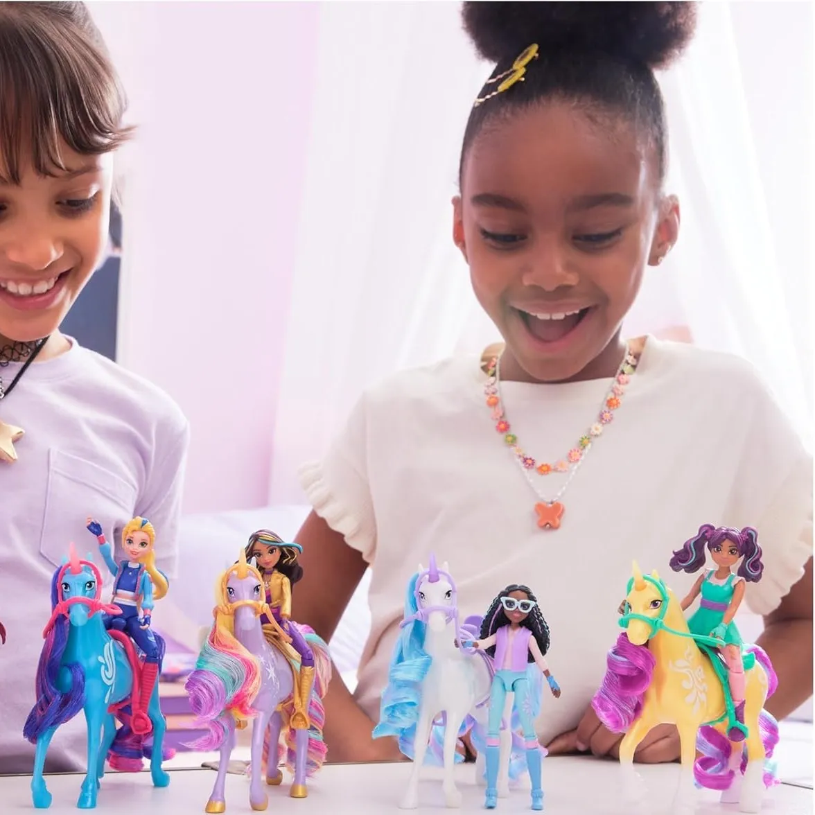 Leaf iz Unicorn Academy čarobna je figura jednoroga s blistavim rogom, bisernim biljnim oznakama i šarenom grivom i repom koje se mogu češljati. Djeca mogu micati njezinu glavu i otkrivati osobnost, mijenjati sedlo i uzdu te smišljati pustolovine poput Netflix crtića. Savršena veličina za male ruke i velike snove.