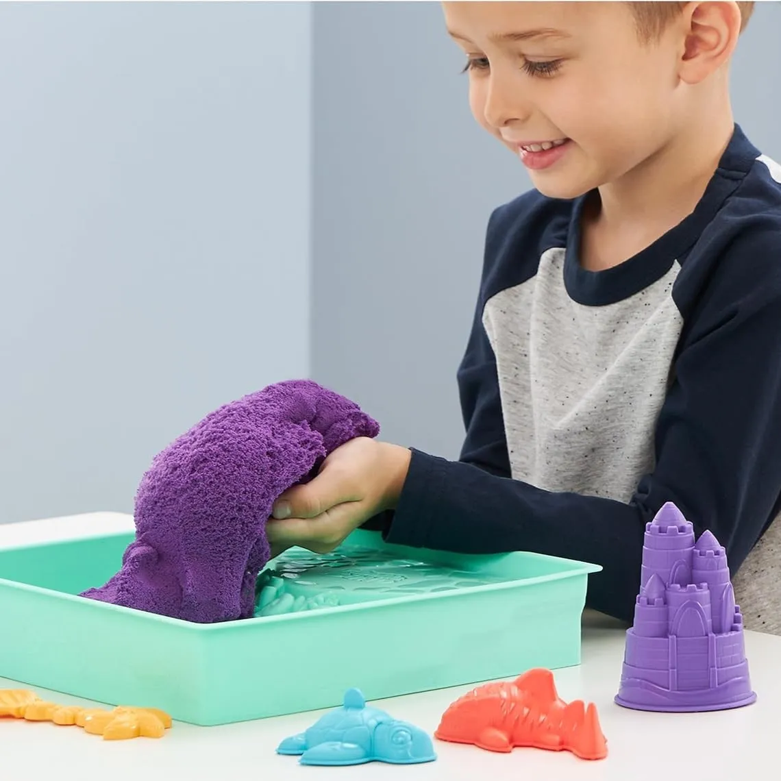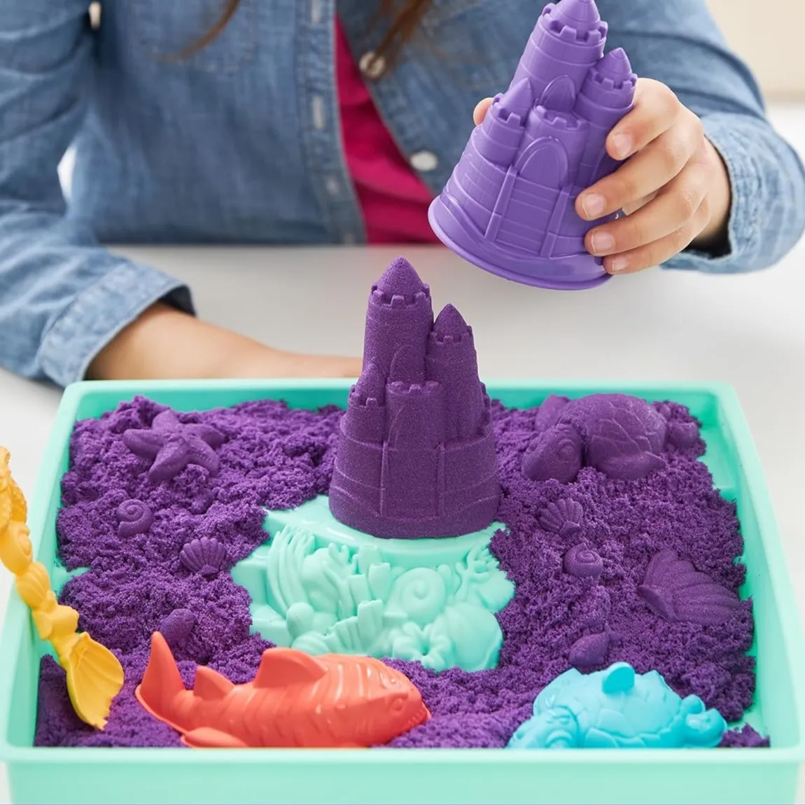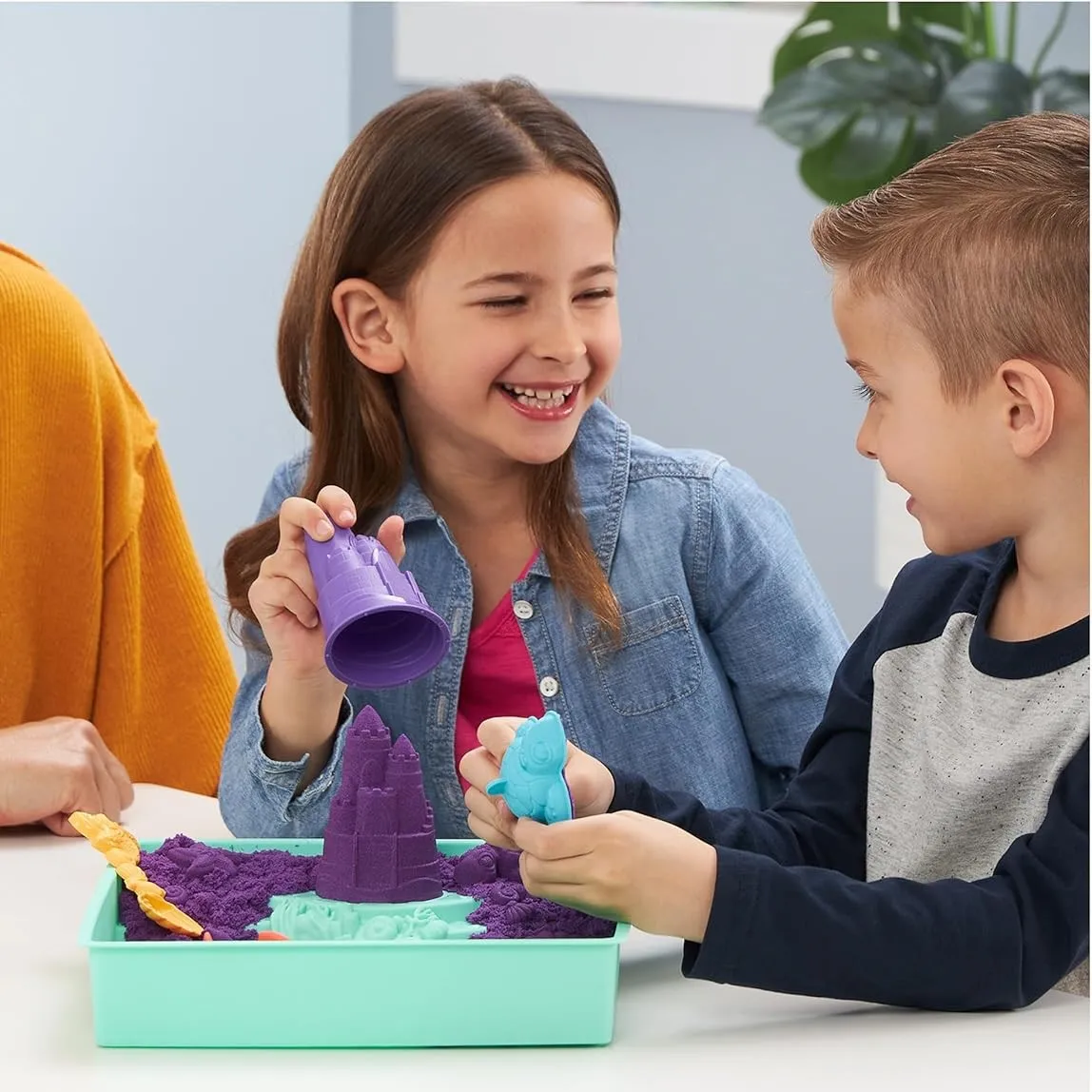 Kinetic Sand ljubičasti set donosi zabavu s plaže ravno na stol. Poseban pijesak curi kroz prste, omogućuje ti da oblikuješ, gnječiš i gradiš što god zamisliš. Uz kalupe i lopaticu radiš dvorce, morske pse i kornjače, pa opet ispočetka - pijesak se nikad ne osuši!