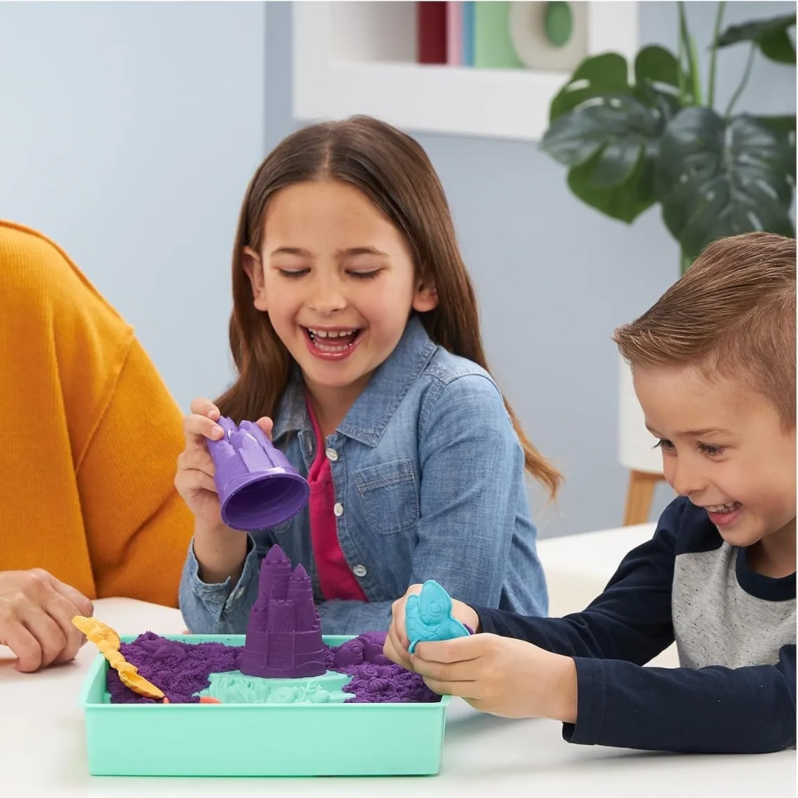 Za kuhinjskim stolom Ema je utiskivala ljubičasti pijesak u kalup. „Gledaj, moj dvorac ima opkop!” nasmijala se podižući kalup. Brat Tom se nasmijao: „Moj morski pas ga ruši prvi!” Ema: „Ne dok moja kornjača čuva vrata!” Pripremali su se za veliku bitku dvoraca od pijeska.