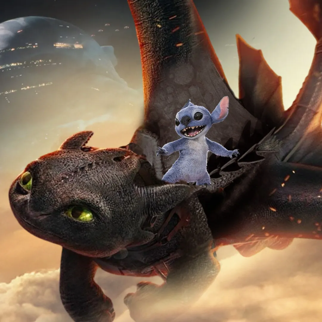 Visoko iznad sjajnih oblaka Bezubica se osvrće na Stitcha koji se drži za njene ljuske. Bezubica: „Spreman, plavi nestaško?” Stitch (ceri se): „Uvijek! Brže, zmaju, brže!” Bezubica zakoluta očima i obruši se. Stitch: „Uhvatimo te odbjegle svemirske loptice prije nego pojedu poglavarovu kacigu!” S povikom jure prema letećim kuglicama, pustolovina zove.