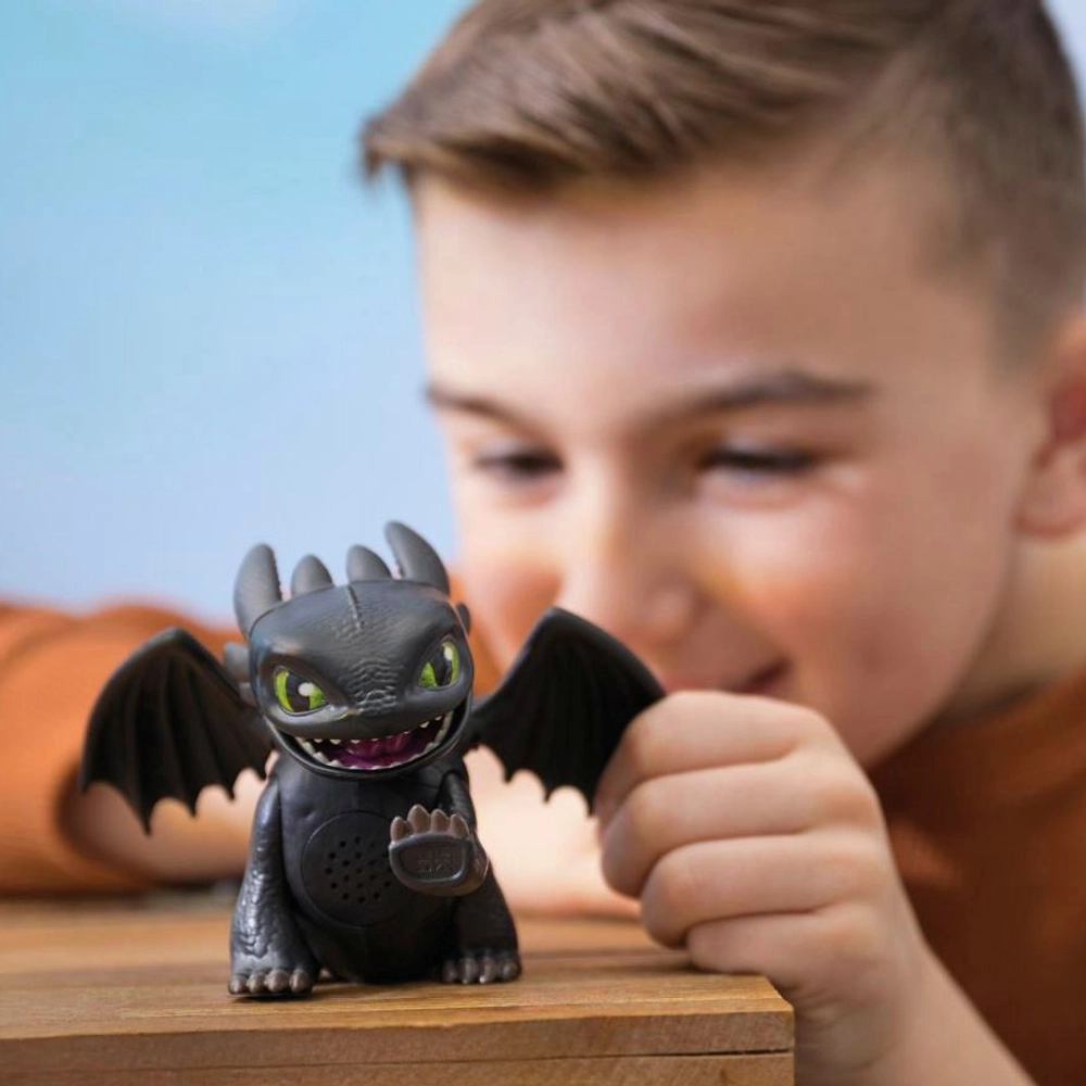 Interaktivna figura Bezubice iz Kako izdresirati zmaja donosi magiju zmajeva ravno u dječje ruke. Pokretna glava, krila i preko 25 zvukova na dodir omogućuju treniranje, igru i izmišljanje vlastitih zmajskih priča. Kompaktna veličina idealna je za putovanja i svakodnevnu igru.