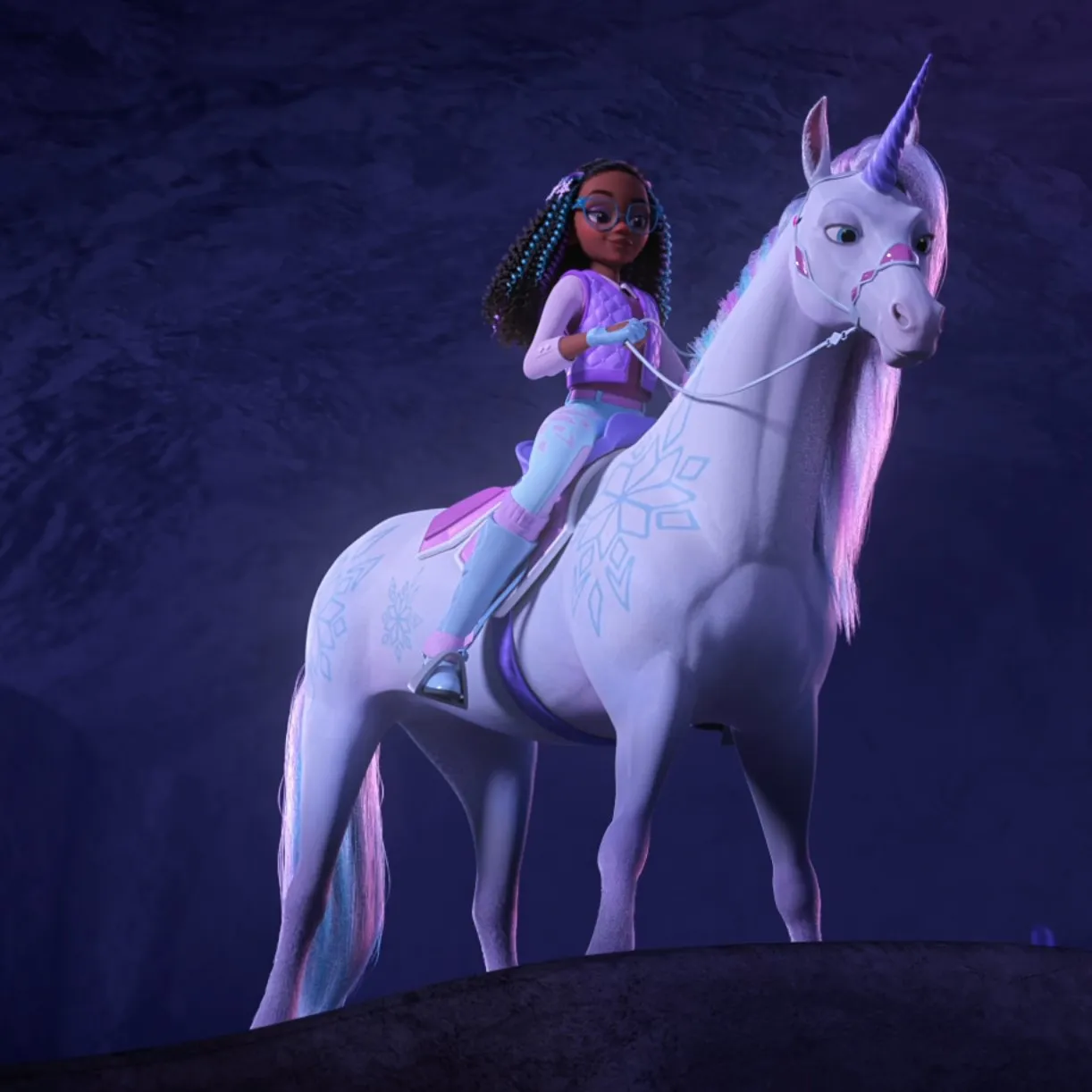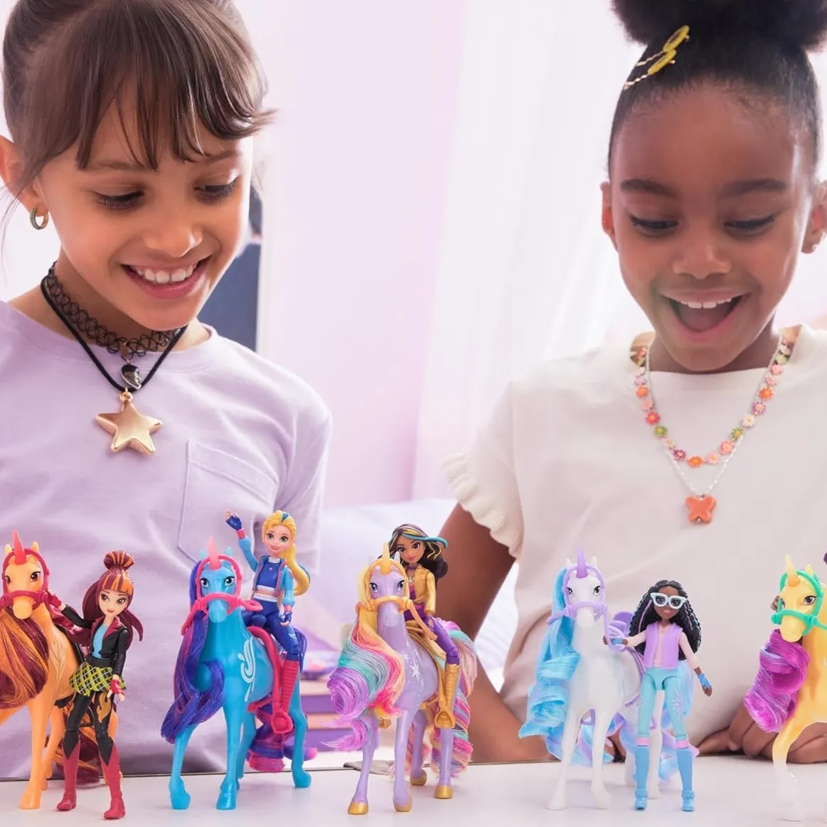 Set figurica Layla i Glacier iz Unicorn Academy vodi djecu u čarobne avanture inspirirane Netflix serijom. Layla ima sedam zglobova pa je možete posjesti na Glacier s blistavom, češljanom grivom i ledenim oznakama. Odvojivo sedlo, uzda i četka potiču beskrajnu igru uloga i maštanja.
