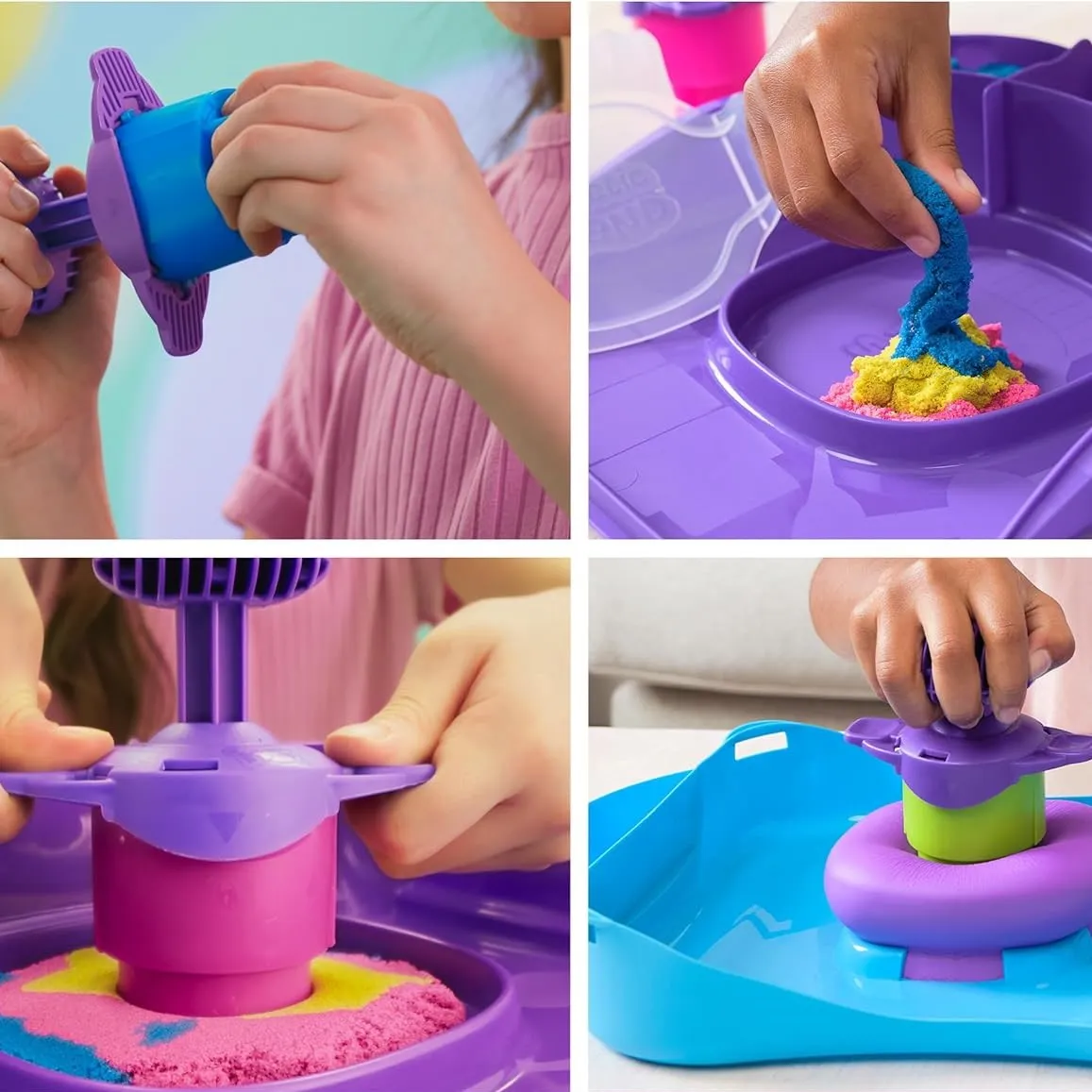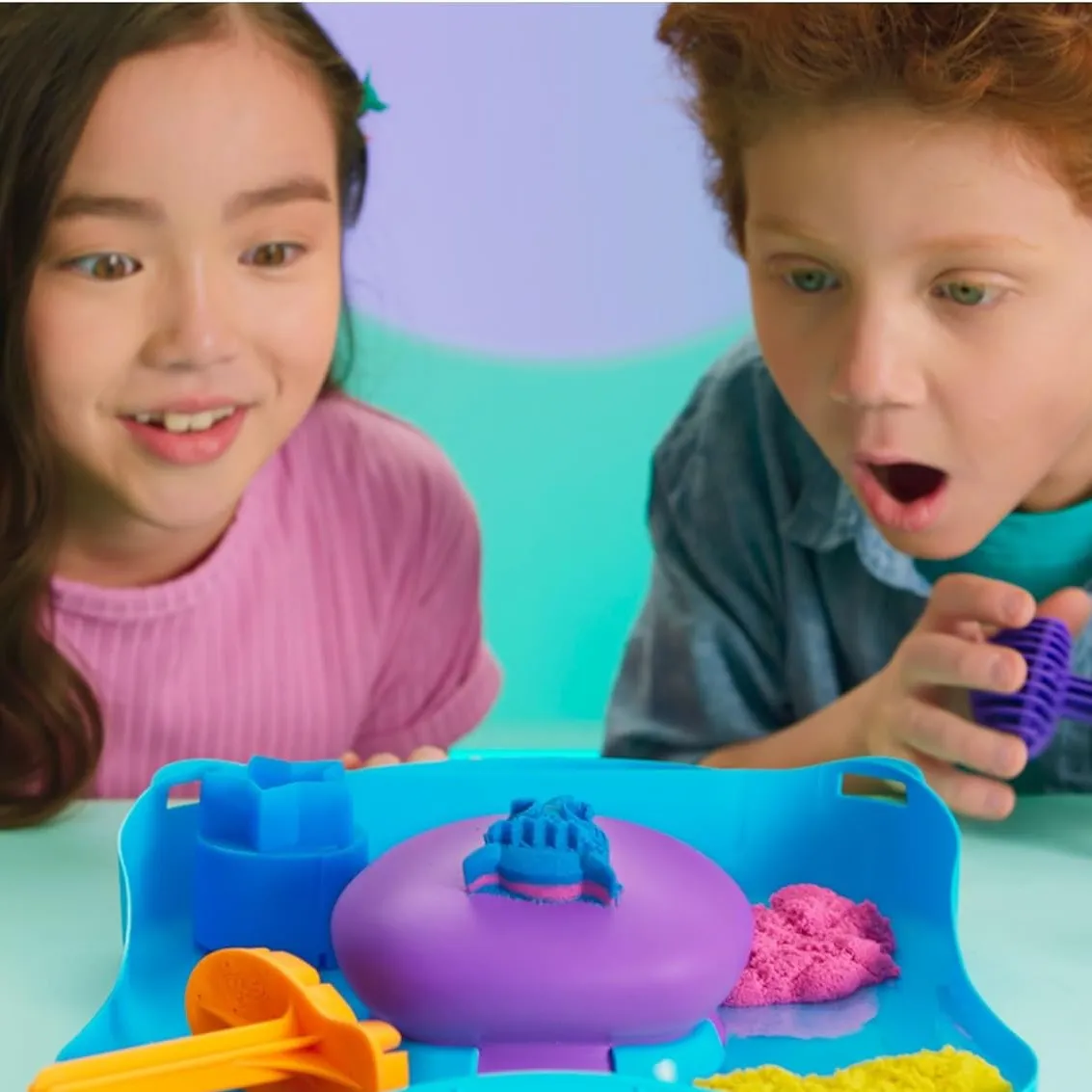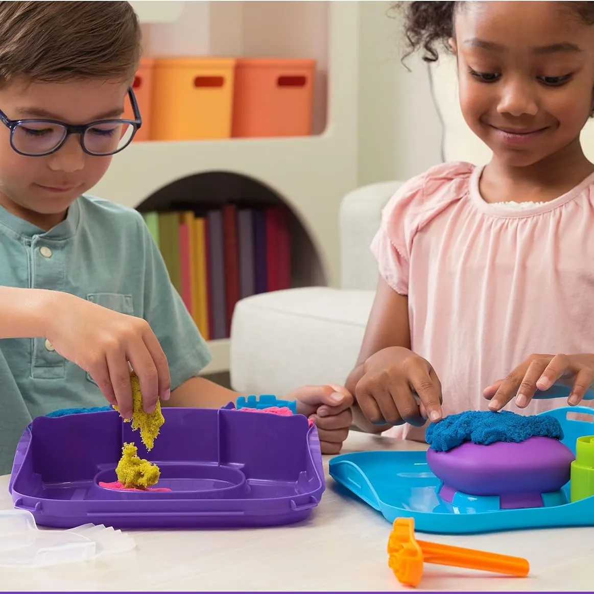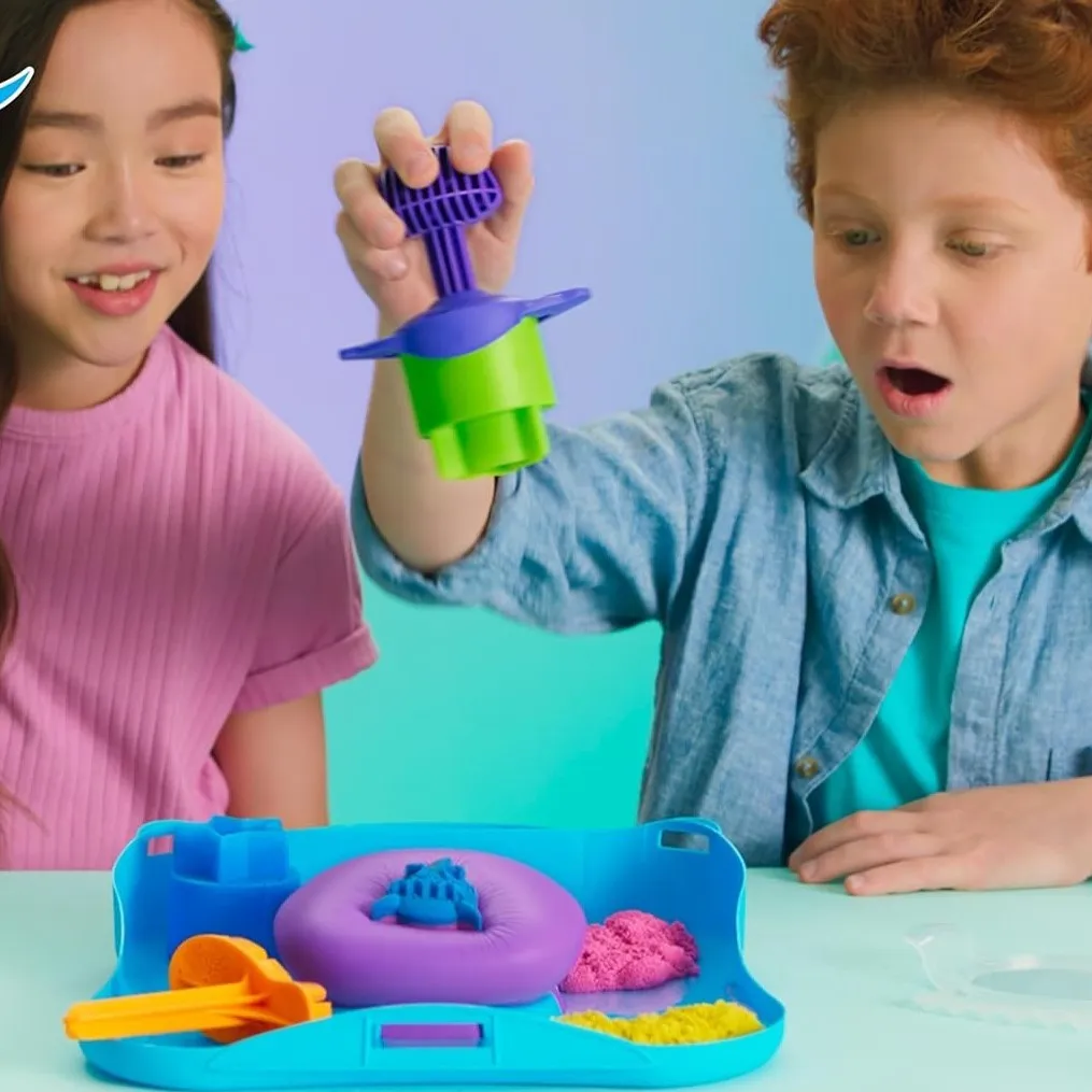 Za stolom u igraonici Ben utiskuje žuti Kinetic Sand u kalup. „Kladim se da ne možeš napraviti zvijezdu bolju od mog morskog psa, Mia!” smije se. Mia se smije i oblikuje plavi pijesak. „Gledaj, moja zvijezda bit će šarena!” Njihov smijeh ispunjava prostor prije Velikog duge natjecanja u pijesku.