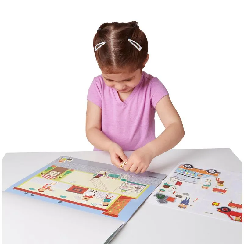 Ovaj set višekratnih naljepnica pretvara svaku igru u novu avanturu. S više od 200 naljepnica i pet velikih gradskih scena mogu stvarati vlastite priče o vatrogascima, graditeljima, trgovcima i prijateljima u parku. Naljepnice se lako skidaju, premještaju i ponovno lijepe—zabava i kreativnost bez kraja!