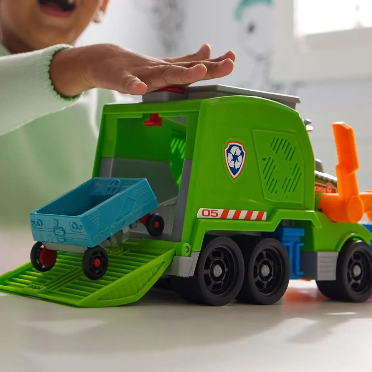 Paw Patrol Crush 'N' Roll reciklažni kamion s Rockyjem omogućuje djeci da „smeće” pretvore u mini vozila, baš kao u omiljenim epizodama. Set sadrži Rockyjevu figuricu, šareni reciklažni kamion, viličar i zgužvani spremnik koji postaje mini autić. Djeca mogu staviti Rockyja, upravljati viličarom i krenuti na reciklažne misije pune mašte i avanture.