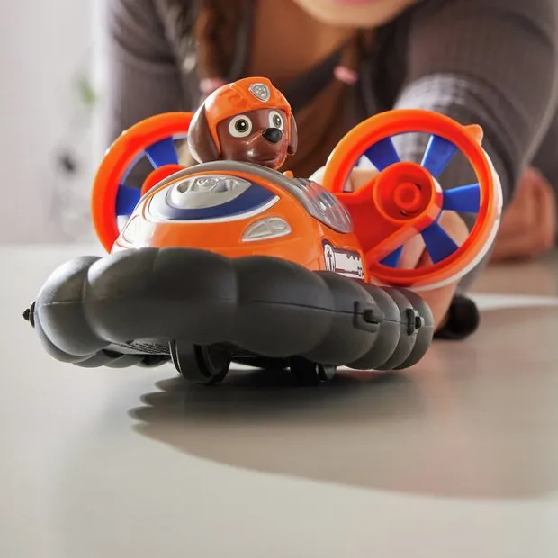Paw Patrol Rescue Wheels Zuma hovercraft vozilo donosi pravu avanturu u dječje ruke. Zumino vozilo ima ogromna kotača za vožnju po svakakvom terenu i pravi bacač s dva projektila. Djeca mogu posjesti Zumu za volan i igrati uzbudljive spasilačke akcije kao u crtiću.