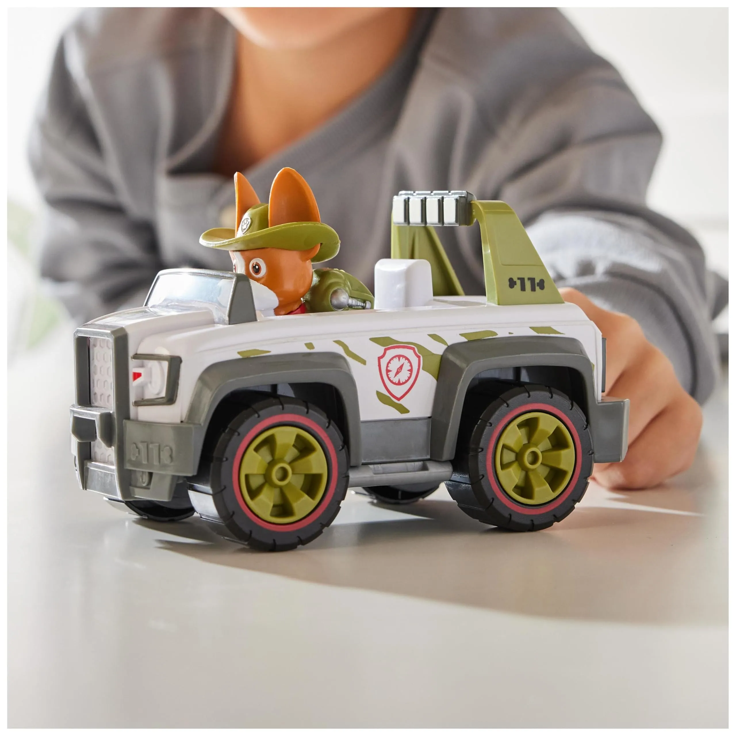 Paw Patrol Tracker set sadrži pomičnu figuricu i čvrsti džip kao u crtiću. Djeca mogu smjestiti Trackera u vozilo ili se igrati s njim posebno, izmišljajući spašavanja u džungli. Veliki kotači i autentični detalji potiču maštu i donose sate zabave.
