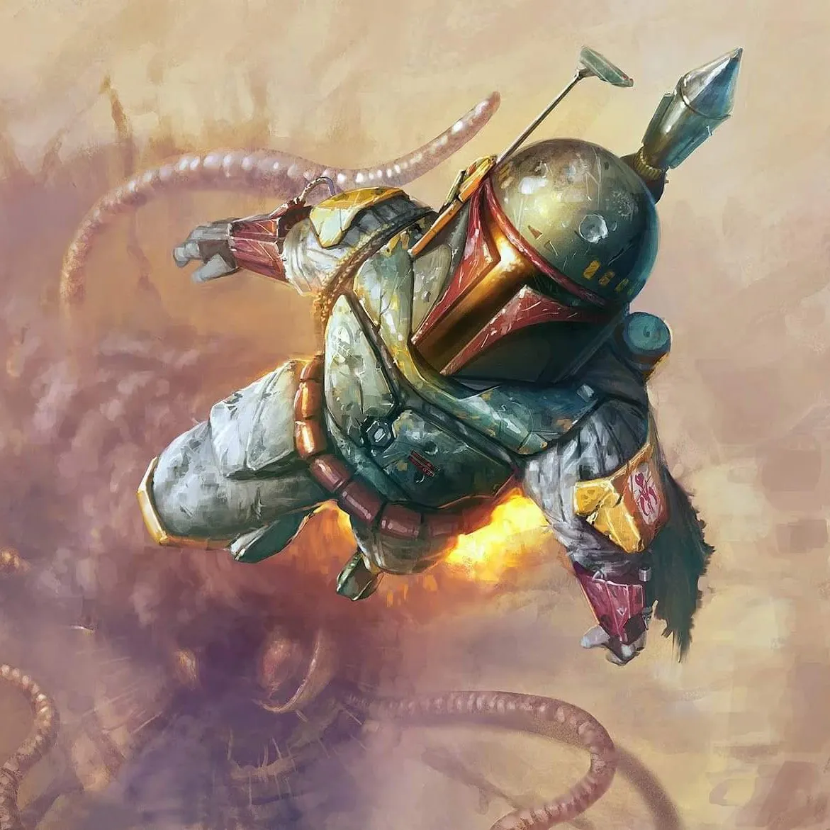 Na rubu Sarlaccove jame, Bobin jetpack bljesne. „Nijedno čudovište ne može zadržati Boba Fetta!” zareži, poleteći uvis. Sarlaccovo ticalo ga za dlaku promaši. „Morat ćeš se više potruditi!” vikne Boba i sleti u blizini. Priprema blaster. „Vrijeme je da vratim svoj oklop.”
