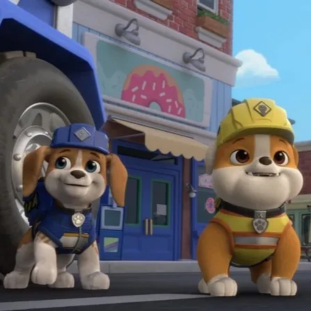 Ispred trgovine krafnama Rubble se smiješi: „Mix, osjećaš li to? Svježe krafne i građevinski izazov!” Mix maše repom: „Ako popravimo klimavi natpis, možda dobijemo zalogaj!” Rubble se nasmije: „Izgradimo ga čvrsto - nijedna krafna ne ostaje iza!” Zajedno žure popraviti natpis prije užine.