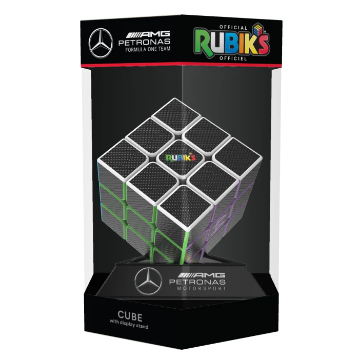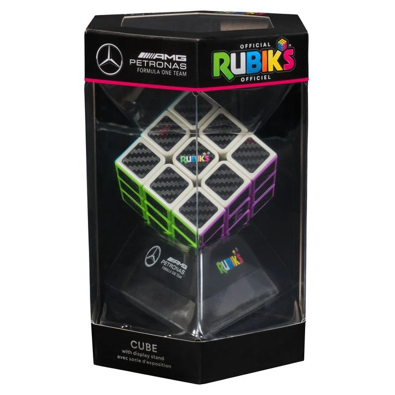 Rubikova kocka 3x3 Mercedes F1 oduševljava pločicama s uzorkom karbona i službenim timskim bojama, spajajući slaganje i uzbuđenje motosporta. Metalni detalji i glatki mehanizam okretanja svaki potez čine kao krug na stazi, a stalak pretvara složenu kocku u trofej za divljenje.