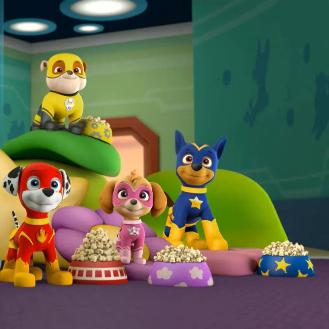 U udobnom salonu baze Marshall se smije: „Tko bi rekao da kokice lete ovako daleko?” Skye se smiješi: „Samo ako ih ti baciš, Marshalle!” Rubble gricka: „Ne brinite, pokupit ću svako zrno.” Chase maše repom: „Ekipo, spremni? Pred nama je Veliki izazov s kokicama prije nego Ryder sazna!”