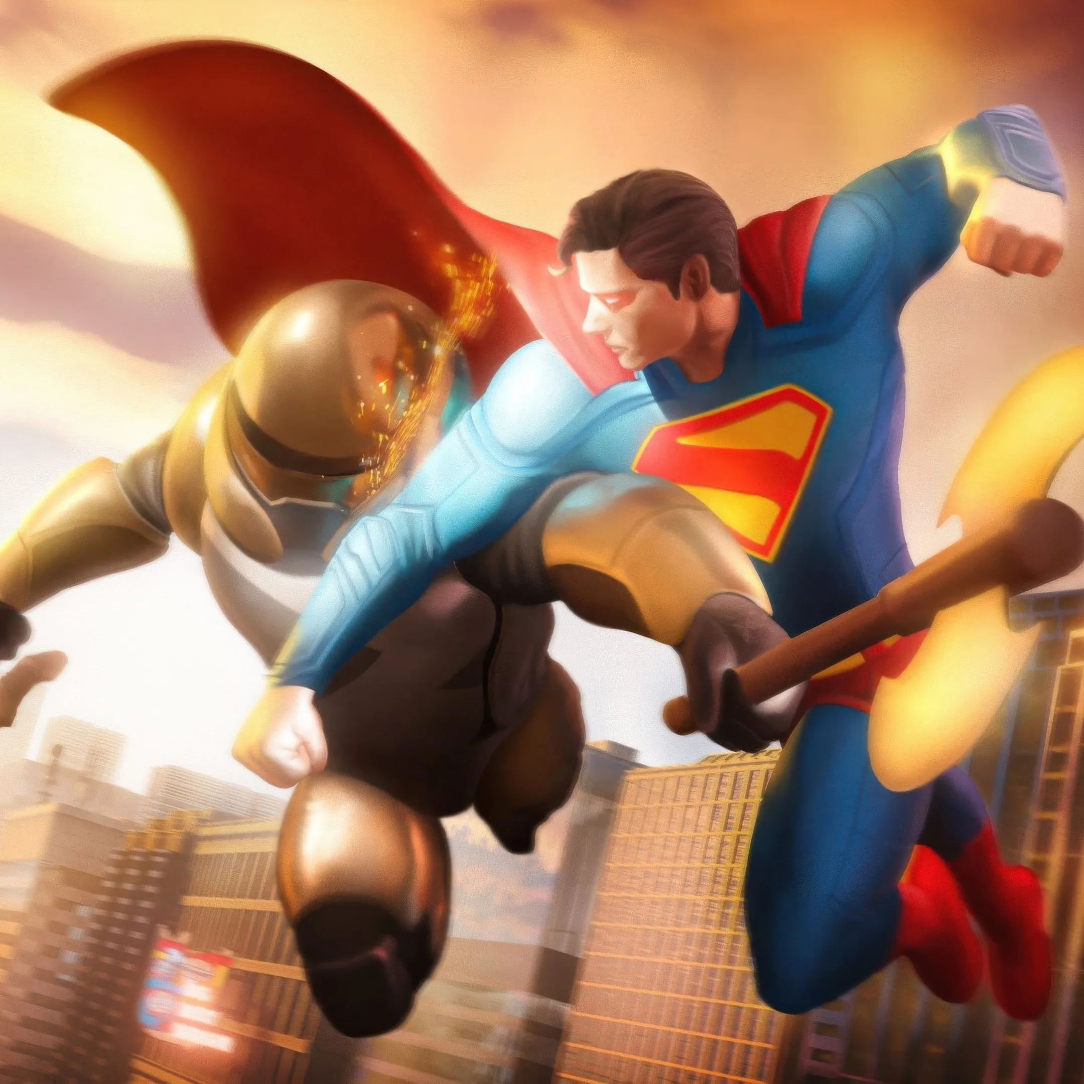 Iznad najviših nebodera Metropolisa, Superman lebdi sa stisnutim šakama. „Nikad ne učiš, Hammere. Metropolis nije tvoj!” Hammerov oklop sijeva. „Samo si ljubomoran na moja poboljšanja, Supermane!” Superman se osmjehne: „Vidjet ćemo što tvoja poboljšanja mogu izdržati!” Iskre frcaju, bitka za grad počinje.